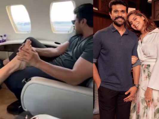 Actor Ram Charan: प्लेन में पत्नी के पैर दबाते दिखे राम चरण