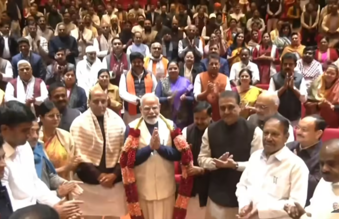 US-India Trade Deal: 3 फरवरी, 2026 को संसद परिसर में आयोजित एनडीए संसदीय दल की बैठक में प्रधानमंत्री मोदी का सांसदों और कार्यकर्ताओं ने जोरदार स्वागत किया। यह सम्मान अमेरिका द्वारा भारत पर टैरिफ में कमी और दोनों देशों के बीच सफल ट्रेड डील के लिए दिया गया। बैठक को संबोधित करते हुए प्रधानमंत्री ने विपक्ष पर कटाक्ष करते हुए कहा कि जब सरकार इस दिशा में काम कर रही थी, तब लगातार आलोचना की जा रही थी।